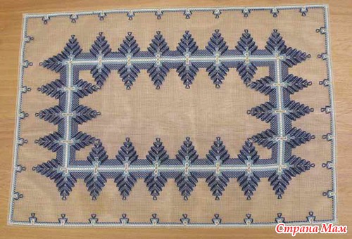 Уголок большой салфетки в синих тонах