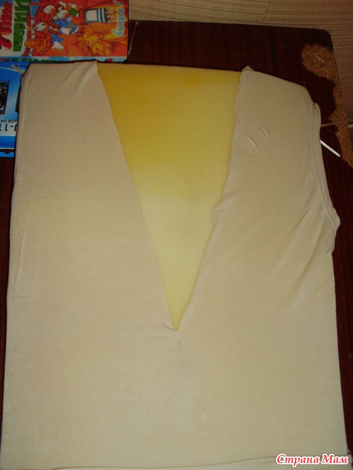 На спинке вырезала триугольник и его же использовала как выкройку