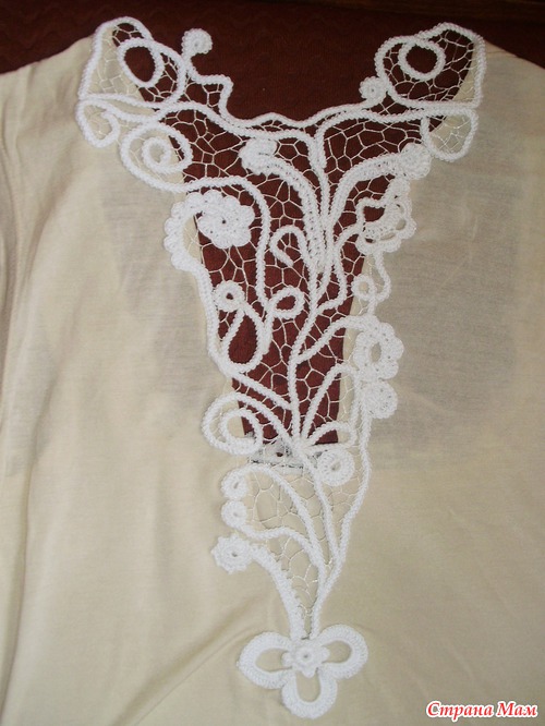 Насмотревшись красот в инете относительно комбинированого вязания решила я реставрировать свою маечку с использованием ирландской техники. это скажем так мой второй опыт в этой технике. (Тут был первый https://www.stranamam.ru/post/5788981/)