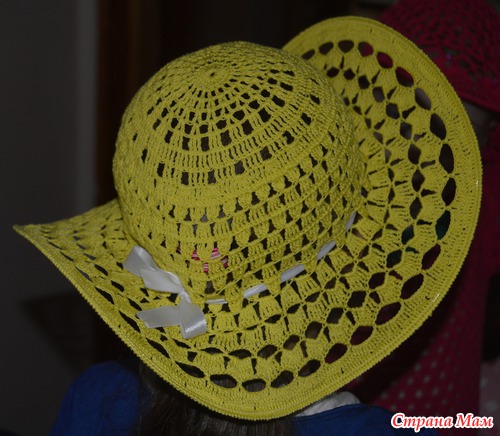это любимая шляпка дочки. Дети в саду, правда, ее уже растянули. А для подружек - в виде "рекламной акции" На одну шляпку уходит 1-2 ночи, в зависимости от усталости