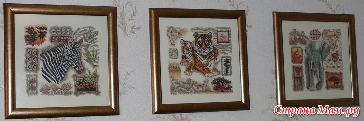 Сестры по игле! Вот наконец созрела я похвастаться вам своими последними работами. Долгими зимними вечерами вышивала крестиком... А если серьезно, то тигра вышивала года полтора, очень уж тяжело было заставить себя его закончить, а хатку одолела всего за 10 денечков. И вот теперь мои серии пополнились - домиков теперь 4 (а уже и 5-й в процессе), а зверушек 3. Теперь не знаю, куда вешать домики...