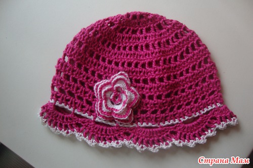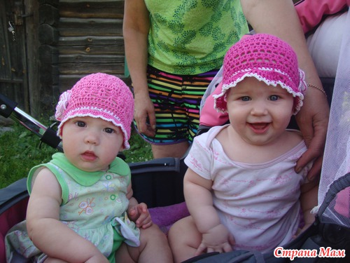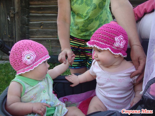 Здравствуйте, девочки! Лето у нас в самом разгаре, поэтому мы с детьми поехали к маме в небольшой городок на побывку. Там у моей 6месячной дочи появилась подружка-ровесница. Когда ее мама увидала нашу шапочку, то сразу захотела такую же.