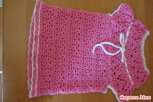 Подружке связала шапочку нежнее и красивее, чем наша - старалась от души. Так как на шапочку ушел чуток ниток, случился экспромт с платьем-туничкой. В придачу к шапочке. Сочинялось на ходу.
