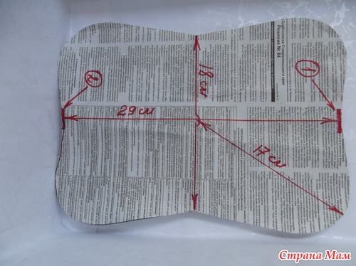 Выкройка лицевой стороны подзатыльника. Цифрами 1 и 2 обозначены места, куда вшивается резинка. Выкройка дана уже с припуском на шов.