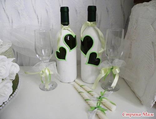 Хочу показать вам бутылочки, которые я делала на свадебный стол