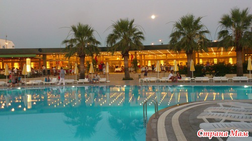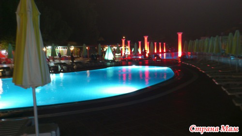 Роскошно выглядел бассейн с вечерней подсветкой возле амфитеатра: