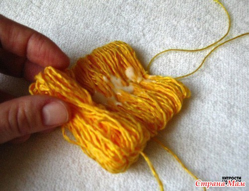 Кончики, чтоб не размотались, временно обматываем тонкой ниткой. Вот так: