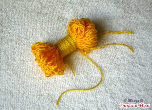 Затем ниткой туго перематываем среднюю часть (где-то 1/3 от общей ширины). Получается такая себе гантелька).