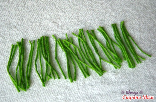 Для чашелистника берем зеленую пряжу, нарезаем из нее кусочки длиной 3-4 см.