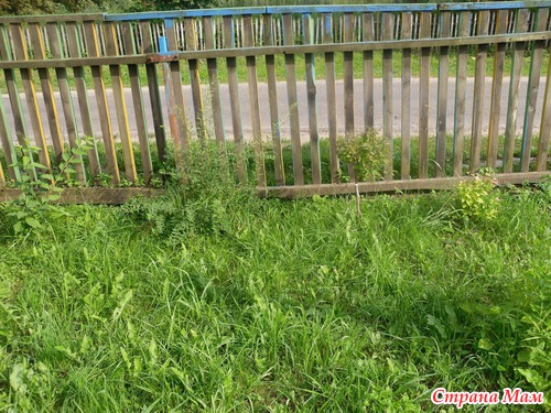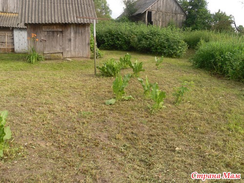 Это наш газонный участок возле дома после косьбы. Оставили только хрен. А чтобы не говорили, что ни хрена ни растет!