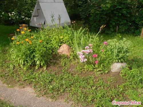 В 2011 году по полной вспашке всех 25-и соток сделали газон и огород (муж лопатой за 3 дня сформировал грядки и себе спину). Граблями я перегребла всю-всю землю! Собирали камни, корни, засевали газонной травой. Клумбы вызвалась сделать доча. Было куплено около 60 пакетов семян цветов, все разложены по росту, цвету, сорту. Через полчаса доче надоело и она просто высыпала все семена в одну кучу.