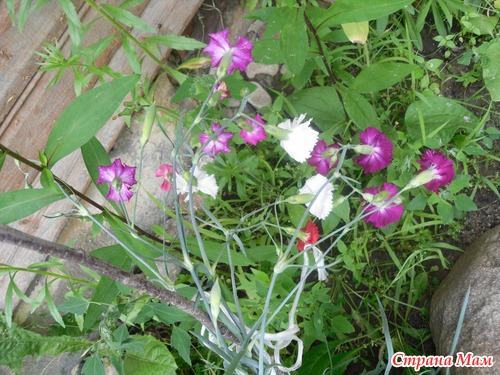 Расцвели на ней самосейкой вот такие прошлогодние цветочки (не помню название)