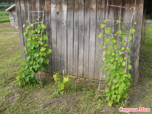 Еще, виноград посажен очень близко друг к другу, пока молодой рассадите. Центральный оставьте, будет закрывать стенку, а крайние по боковым стенам, получится "живой" сарайчик или банька. Только виноград надо пустить на сетку, чтоб продувалось дерево домика.