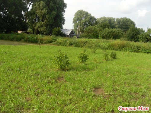 Этот газон за огородом. Кустики смородины черной и красной, крыжовника, черноплодной рябины в два ряда.