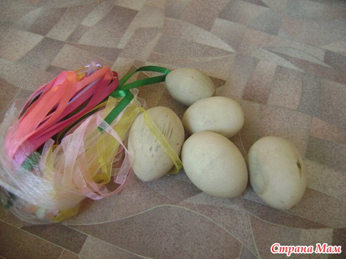 Много-много ленточек и яички деревянные для декупажа