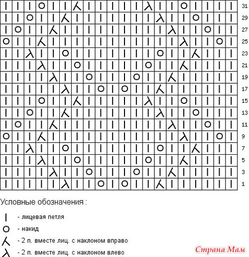 Важно! Схема узора дана для лицевых рядов! Изнаночные ряды провязывать изнаночными.