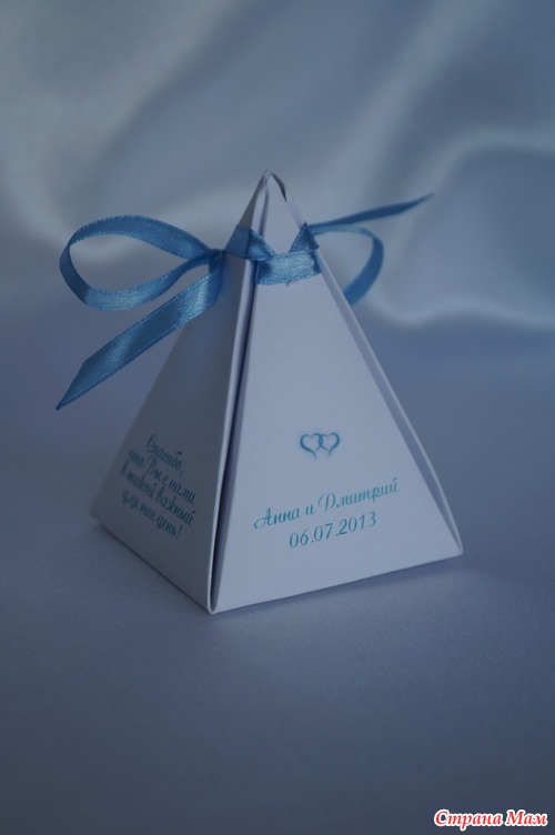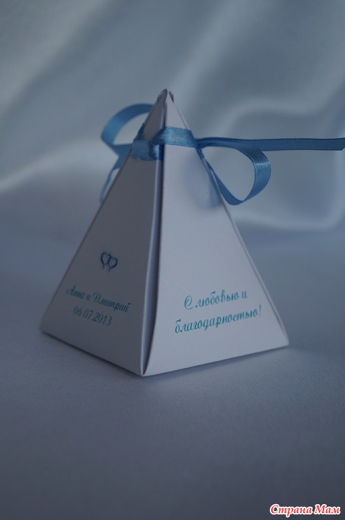 Я вот сейчас поняла что надо было в кулечки завязать, это было бы быстрее. не коробочки складывать, а в ткань красивую типа фатина или креп-сатина конфетку завернуть и ленточкой завязать. там надо-то по размеру носового платка.