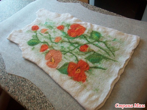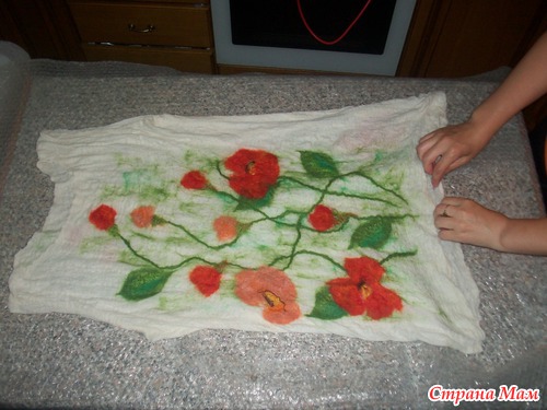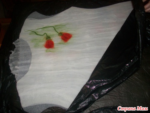опааа!!! у меня оказались бока( с марлей этот фокус не прошел, как с шелком) поэтому раскладку шерстью по бокам делаем, как положенно с припуском!