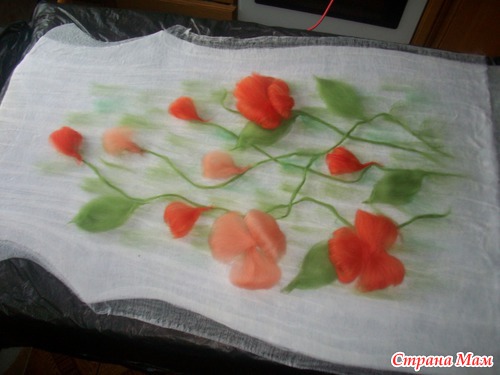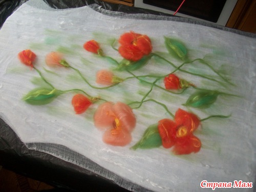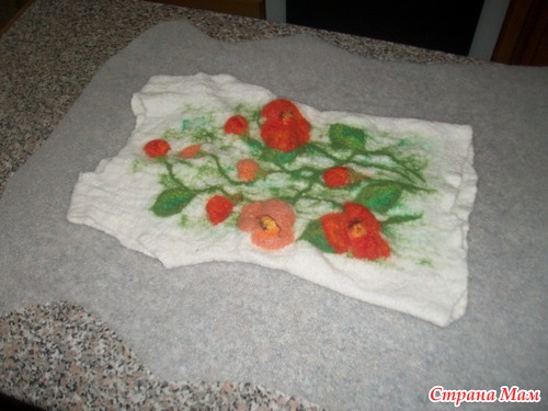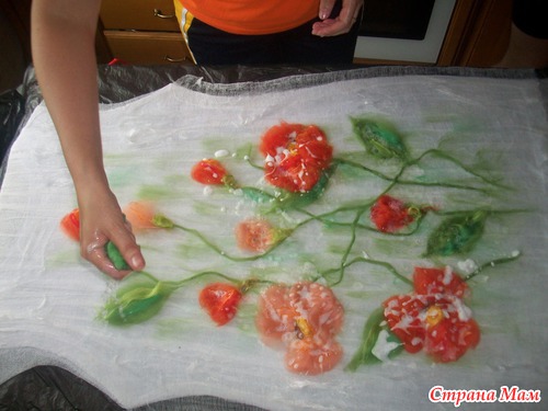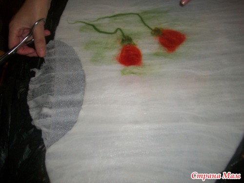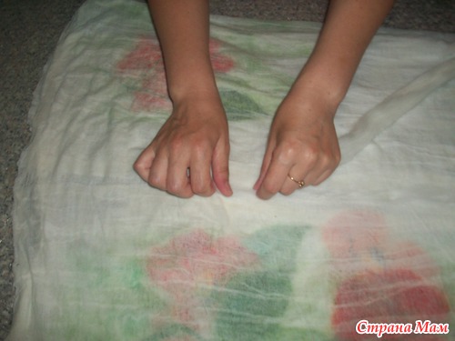 опааа!!! у меня оказались бока( с марлей этот фокус не прошел, как с шелком) поэтому раскладку шерстью по бокам делаем, как положенно с припуском!