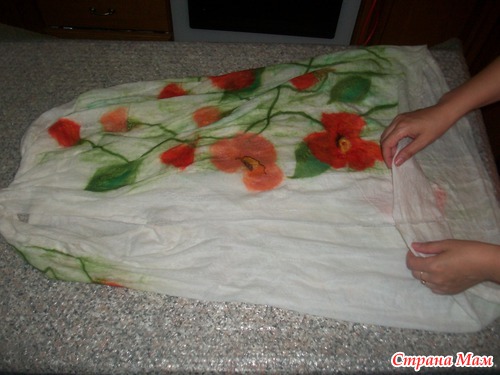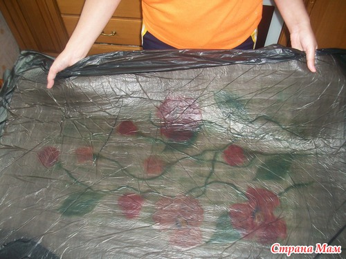 сняли пленочку, поправили где нужно (здесь у меня уже перевернутое платье на другую сторону, иначе очень долго)