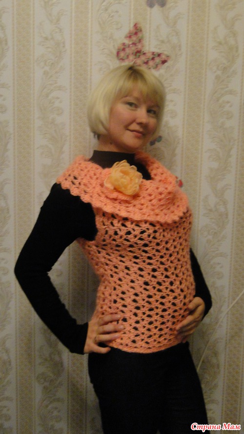 Объясняю: дырки-это для рук, с одной стороны больше-это перед,как бы больше места для грудей, а по меньше это спинка, делается это для того,чтобы воротник ложился как кочели))))