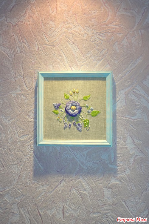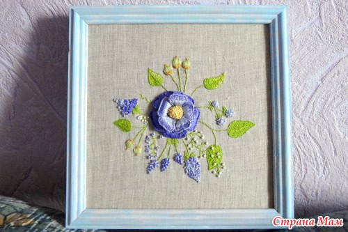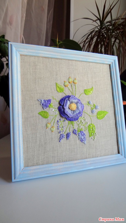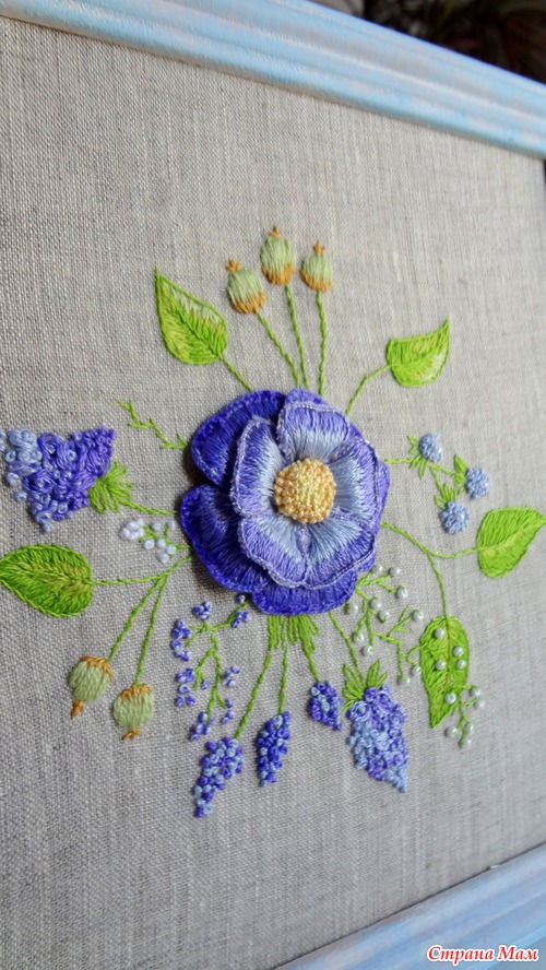 Хочу показать вам работу "Причуда в фиолетовых тонах", вышивка объёмной гладью. Это результат совместного отшива с Розой вот её блог http://www.roniy-stitch.com/ сходите посмотрите на красоту которую вышивает Роза!!! Не пожалеете!!!Моя причуда правда больше в голубых тонах, даже рамочку окрасила с голубым