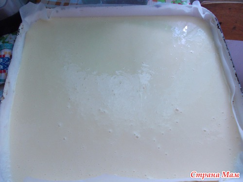 выкладываем по противень ( дозировка на стандартный, у меня на этой плите маленький, поэтому получился толстоватый, теперь буду знать ) и выпекаем где то 20 минут
