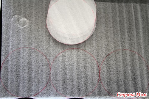 Точно по окружности диска вырезаем уплотнитель.. В моей случае это какая-то подстилка анти-шок или не знаю что, вобщем это что-то типа целлофана, только с пористо-пенным эффектом.. Это может быть флис, тонкий синтепон, фланелька, старая пеленка, короче, любая ткань