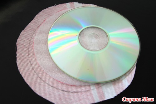вырезаем из ткани по форме диска окружность с припуском ок. 1см