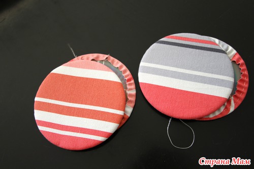 Соединяем вырезанные детали и наметочным швом проходимся по краю припуска, таким образом, чтобы стянутый шов закрыл диск..