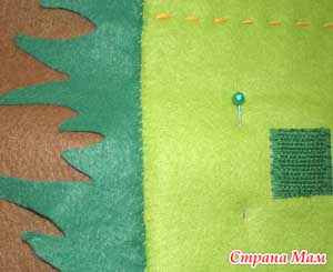 10. «Травку» пришила смёточными стежками по прямому краю, а потом швом через край прикрепила лужайку (смотрите фото поближе).
