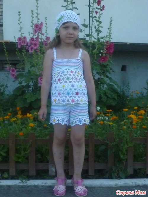 Фотографии получились какие-то бледноватые... в живую очень сочные! Доча не выдержала, пока разрешу одеть, натянула, а к вечеру обмыла... в фонтане... упала в него