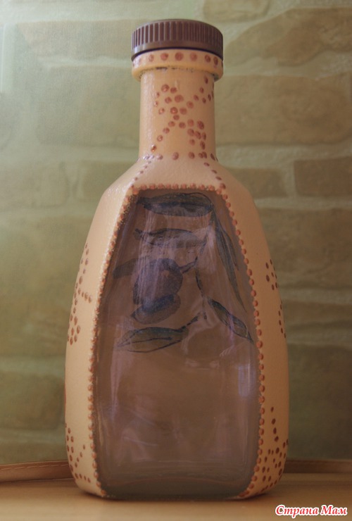 Бутылочка для оливкового масла (а то оно у меня в 5л баклаге приехало, не удобно пользоваться) в комплект к баночке для соли, сделанной ранее.