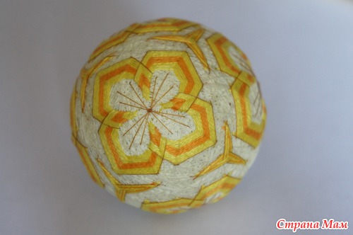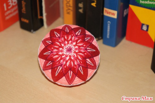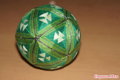 :Вторым стал зеленый темари "Клевер на поляне". Никак не ожидала, что его так сложно делать... Намучилась и времени потратила уйму, из-за чего к выписке подарок был немного недоделан