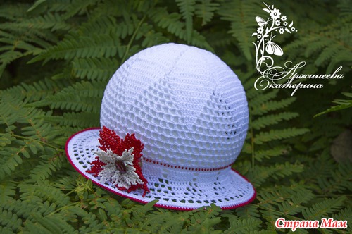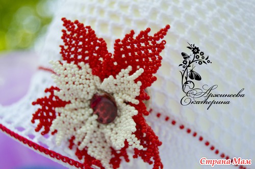 Элегантная шляпка "Бисерные грезы" создаст неповторимый образ вашей красавице. Шляпка выполнена из 100 % мерсеризованного хлопка, расшита бисером и украшена бисерным цветком на брошке. расчитана на объем головы 50-52 см.
