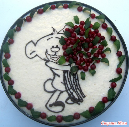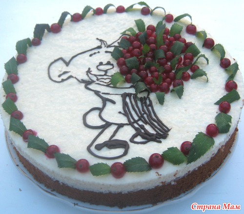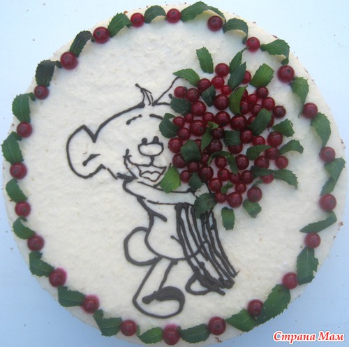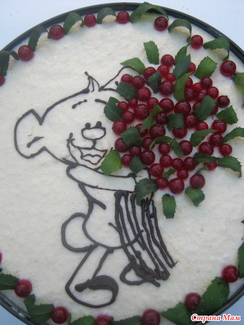 Мой отпуск совпал с двумя праздниками. Естественно, что печь десерты пришлось мне. Но я согласилась с радостью. Уж слишком много идей в голове сидит, которые хочется попробовать воплотить в жизнь. Одним из праздников было полгодика моей любимой и пока единственной племяннице. Хотелось сделать что-нибудь красивое, нежное и дестки игривое. Благо, что есть навыки срисовывать картинки(рисовать самой пока никак, фантазии не хватает). Поскольку в отпуск ехала на машине, то прихватила с собой все свои кондитерские штучки.. Рисунок из растопленого шоколада рисовала прямо на торте. Если не получалось, ждала несколько минут, пока шоколад застывал, удаляла неправильный фрагмент рисунка и перерисовывала заново. Рецепт тортика не буду повторять, так как уже описывала его раньше. Посмотреть можно тут Тортик для мужа . А вот и результат моих стараний.