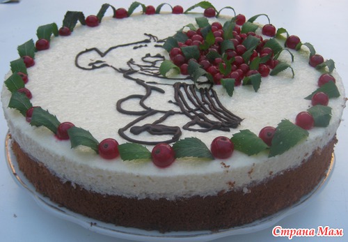 Мой отпуск совпал с двумя праздниками. Естественно, что печь десерты пришлось мне. Но я согласилась с радостью. Уж слишком много идей в голове сидит, которые хочется попробовать воплотить в жизнь. Одним из праздников было полгодика моей любимой и пока единственной племяннице. Хотелось сделать что-нибудь красивое, нежное и дестки игривое. Благо, что есть навыки срисовывать картинки(рисовать самой пока никак, фантазии не хватает). Поскольку в отпуск ехала на машине, то прихватила с собой все свои кондитерские штучки.. Рисунок из растопленого шоколада рисовала прямо на торте. Если не получалось, ждала несколько минут, пока шоколад застывал, удаляла неправильный фрагмент рисунка и перерисовывала заново. Рецепт тортика не буду повторять, так как уже описывала его раньше. Посмотреть можно тут Тортик для мужа . А вот и результат моих стараний.Племяшка и её мама были в восторге!
