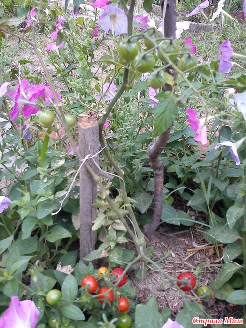 Ну и Черри (5 штук), о котором хочу сказать несколько слов отдельно. Вот Черри в обычной грядке ( урожай сняли)