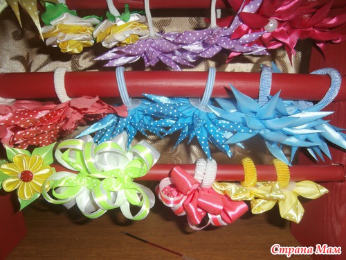 Бантов у нас много, и вечно была проблема как их хранить, в коробках неудобно - они мнутся. вот муж соорудил мне такую конструкцию. очень я с дочками довольны остались. теперь все (почти все, все и сюда не помещаются) наши банты будут в порядке и под рукой!