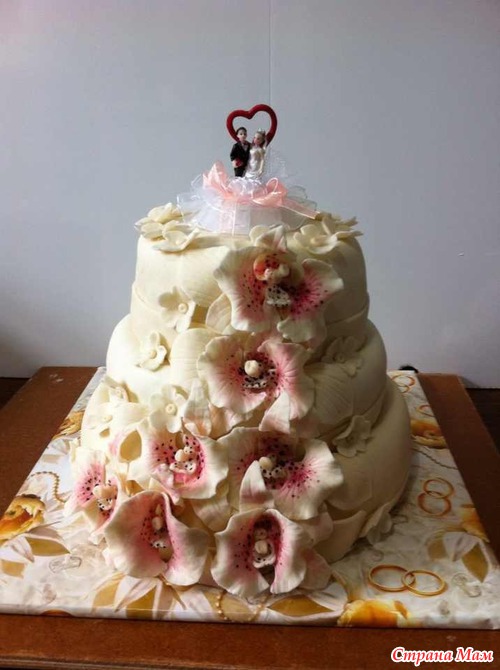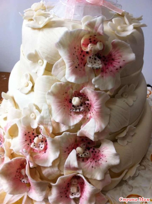 Девчонки, всем привет! Вот и опять я присоединяюсь в ваши ряды после вынужденного простоя! Строго не судите... Такое делала впервые... Вес торта получился 7.400г. Заказывали с орхидеями, как на ваш взгляд - получились они у меня?
