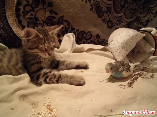 Пару лет назад к нам во двор прилетел волнистый попугайчик... Видимо, улетел у кого-то из клеточки, потому как был довольно спокойный и не особо сопротивлялся, когда взяли его в руки... Ради такого дела приобрели клеточку и все прибамбасы для нашего нового питомца... Назвали Кешкой (классика)... Попугайчик спокойно прижился, но мы поняли, что дверцу клетки нужно дополнительно укрепить, т. к. Птыц норовил открыть ее и выбраться наружу... вскоре мы купили ему девочку-подружку (назвали Рикой)... И спустя некоторое время они начали миловаться и намекать нам, что пора бы уж и дуплянку им подарить - что и было сделано...