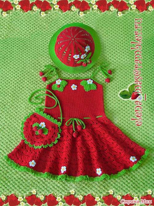 Столько вокруг клубнички навязалось! Вот и мой очередной вклад в общее лукошко! Комплект на девочку 4-х лет. Пряжа Сосо.