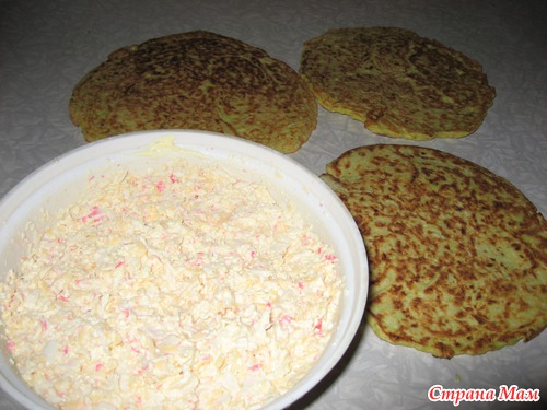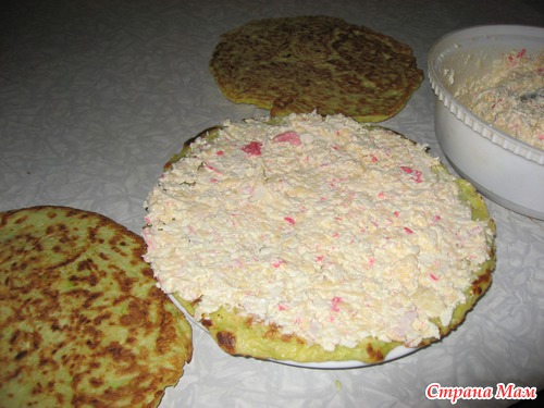 Закусочный торт из кабачковых блинчиков. МК.