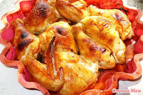 Такая курочка – сочная, красивая, с ароматной, хрустящей корочкой станет «желанной гостьей» на любом столе, как в будний, так и в праздничный день. Кроме того, такой соус-маринад отлично подойдет для запекания курицы не только в духовке, но и на решетке, на костре.