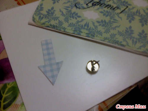 Мне понадобился картон и брадс:Картонную стрелку уплотнила еще одним слоем плотной скрап бумаги, чтобы стала повеселее