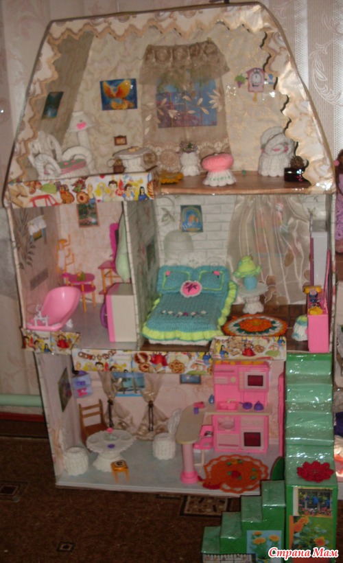Добрый день всем кто заглянул. А вот и закончила домик для кукол. Внучка так рада Думаем ещё другой домик сделать, чуть поменьше, уже есть наброски. Читать полностью