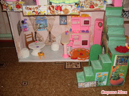 Деткам конечно надо уделять внимание,но можно и вместе сними занятся домиком.Его я делала из картона от упаковки холодильника.Там есть ещё один вариант.