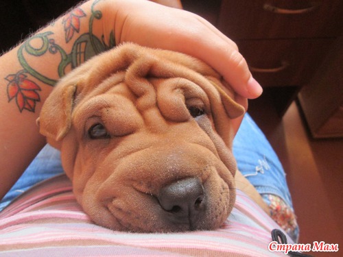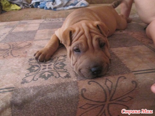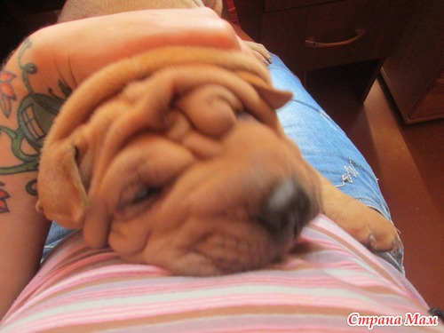У нас теперь в доме появился четвертый член семьи. Малышка Рокси!)) Лапотуся моя. Китайский шарпей... Она такая мягенькая и складчатая.. Умная преумная... Правда, как все щеночки шкодница