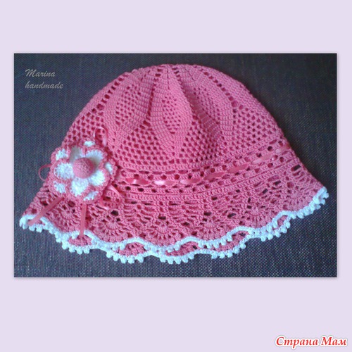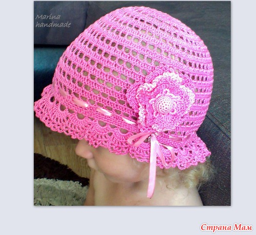 Здравствуйте, дорогие страномамочки! Продаётся летняя панамочка для девчушечки от 1,5 до 2,5 лет. Выполнена из 100% тоненького хлопка, ниточки Pelican, отделка цветочек с обвязанной бусиной, продета атласная ленточка в тон.