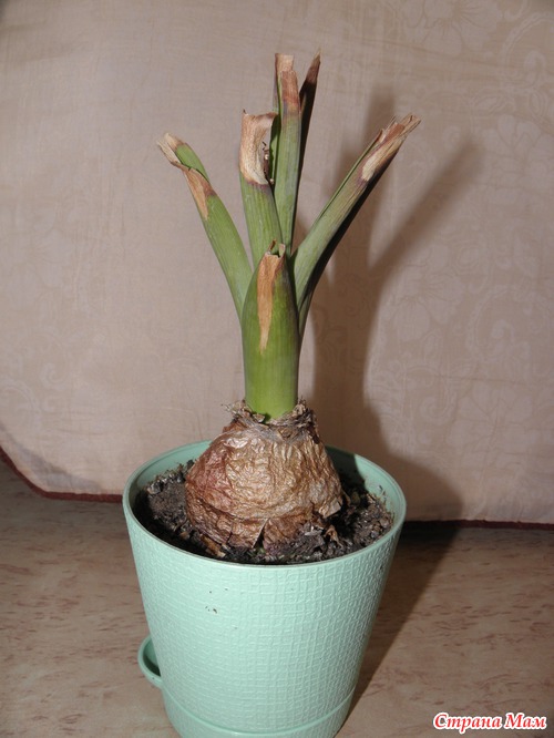 . Но! Луковка после всего выше сказанного не прижилась... Когда подарили мне это счастье во второй раз, после цветения убирать его я ни куда не стала. Решила, пускай сидит пока и растёт, а там видно будет. И вот 2-а дня назад я увидела, что у Гиацинта (простите) - что то лезет! Дорогие СМочки скажите пожалуйста, что это? Детки? Или... Хотя больше вариантов у меня нет
